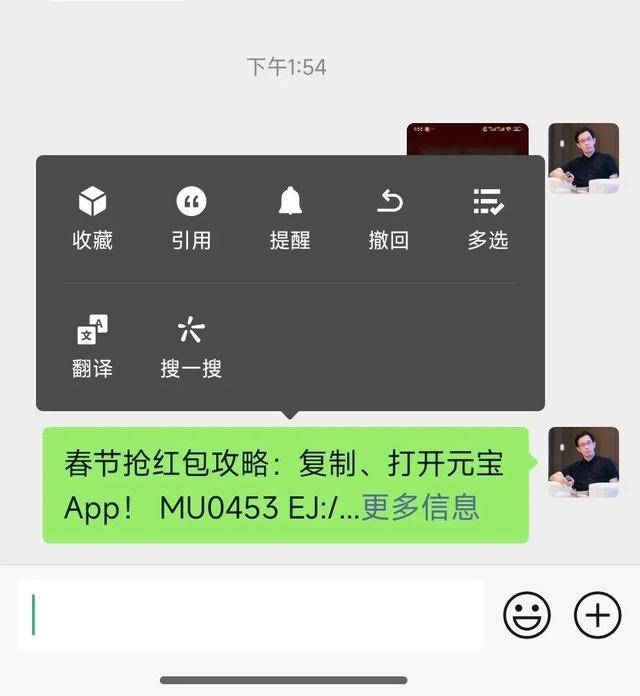 不过,据此前报道,2月6日下午开始,元宝与千问的红包口令在被发送到微信对话界面后,用户已经无法复制口令信息。